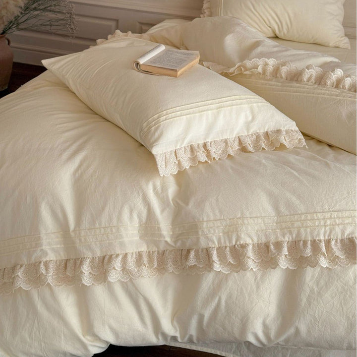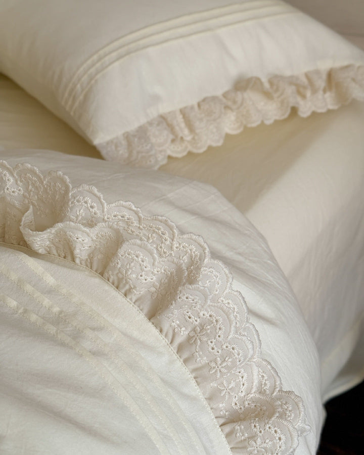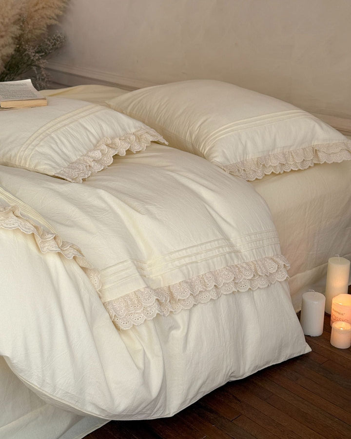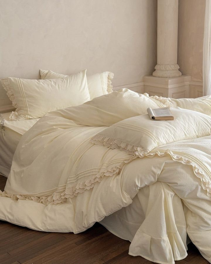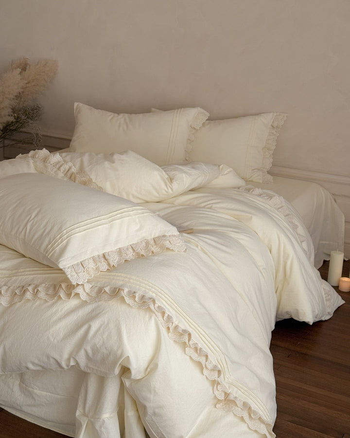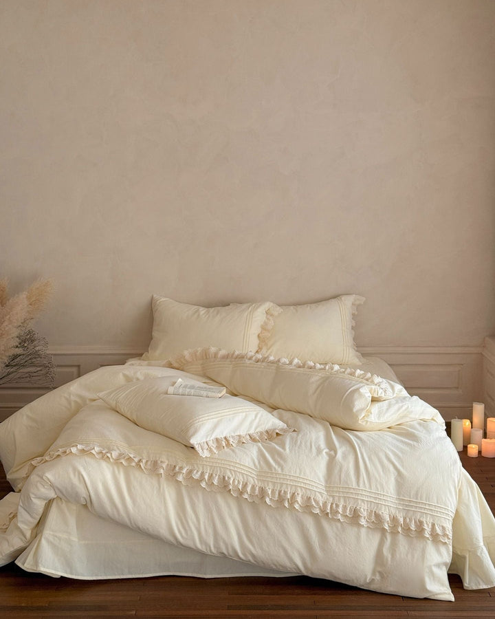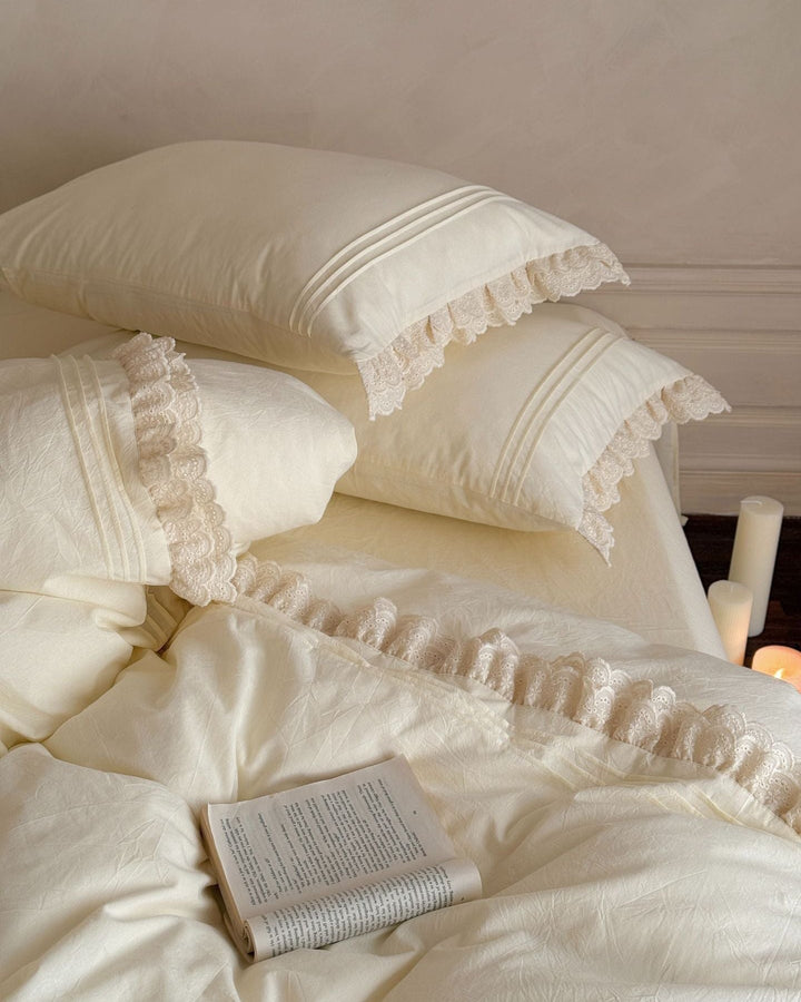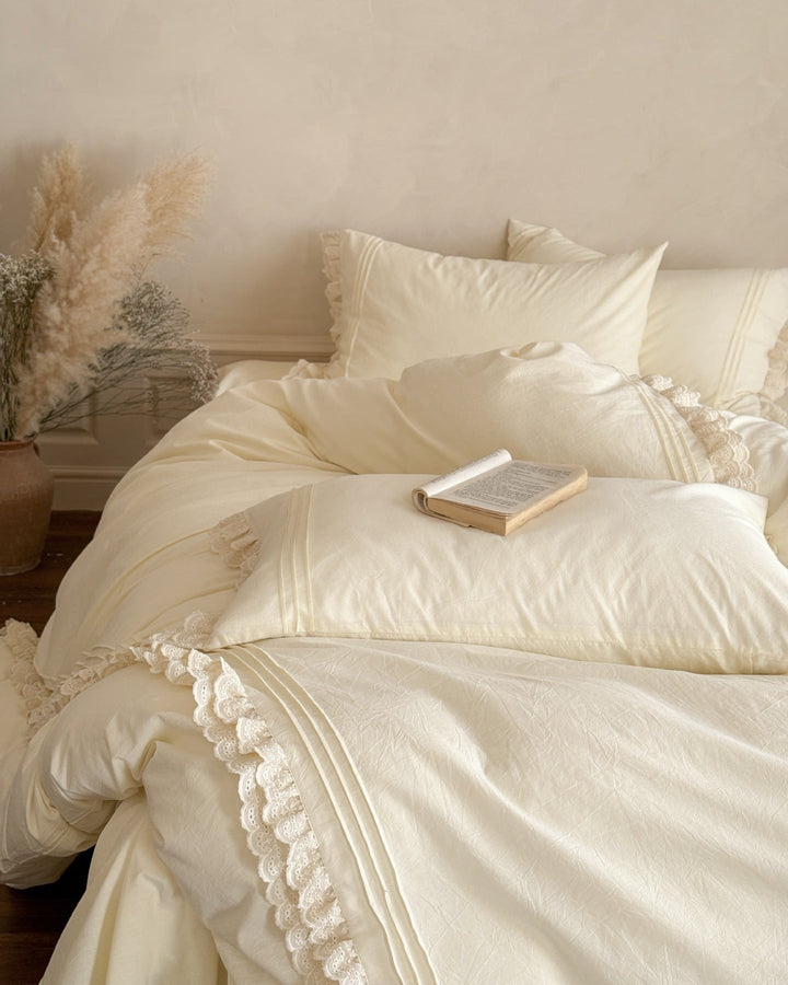 Accordion Pleated Lace Ruffled Bedding Set is now offered in a bundle, and all bundle sets come with a pre-included 10% to 20% discount! Enjoy savings on a complete set, including a duvet insert and pillow(s), along with our classic duvet cover, bed sheet, and pillowcase(s).