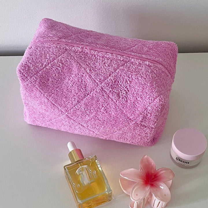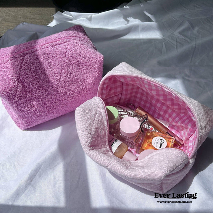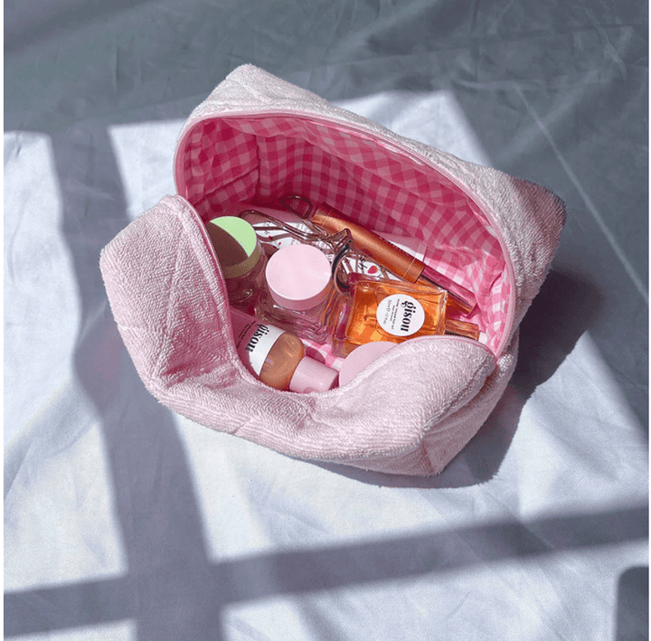 This thoughtfully coordinated set includes blush-toned macaron face towels, plush open-toe bow slippers, a lightweight striped cotton bathrobe, and a pastel gingham makeup bag for easy organization. Each piece adds a cheerful pop of pink and a touch of calm to your busy college routine.