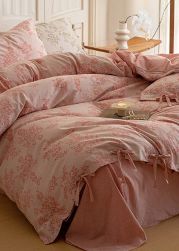 Add a stylish touch to your bedroom with this chic floral bedding set. The Ever Lasting's Bonnie Ribbon Bow Tie Floral Bedding Set combines soft floral patterns with playful ribbon bow details for a fresh, fashionable look. The duvet cover includes corner ties and a hidden zipper, keeping your insert secure and your bed looking effortlessly polished. Perfect for a modern, feminine space!