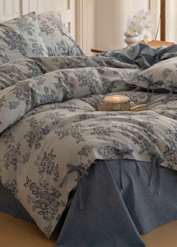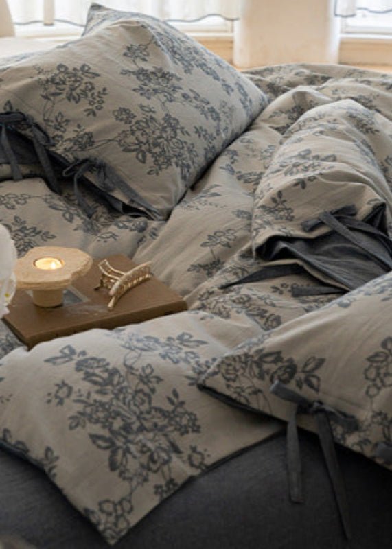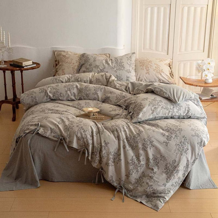 Create a peaceful escape with this soothing floral bedding set. The Ever Lasting's Bonnie Ribbon Bow Tie Floral Bedding Set blends soft floral prints with delicate ribbon bow accents for a gentle, calming look. The duvet cover features corner ties and a hidden zipper, keeping your insert securely in place. Ideal for adding quiet elegance and comfort to your bedroom.