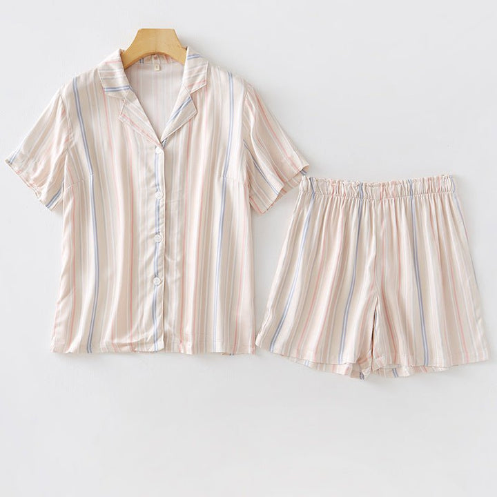 Buttoned Lapel Collared Striped Pajama Set / Pink