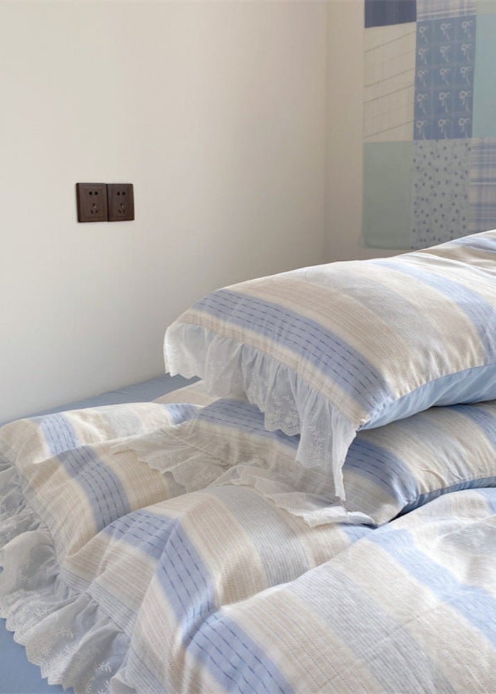 Cecilia Lace Ruffle Double Gauze Striped Bedding Bundle