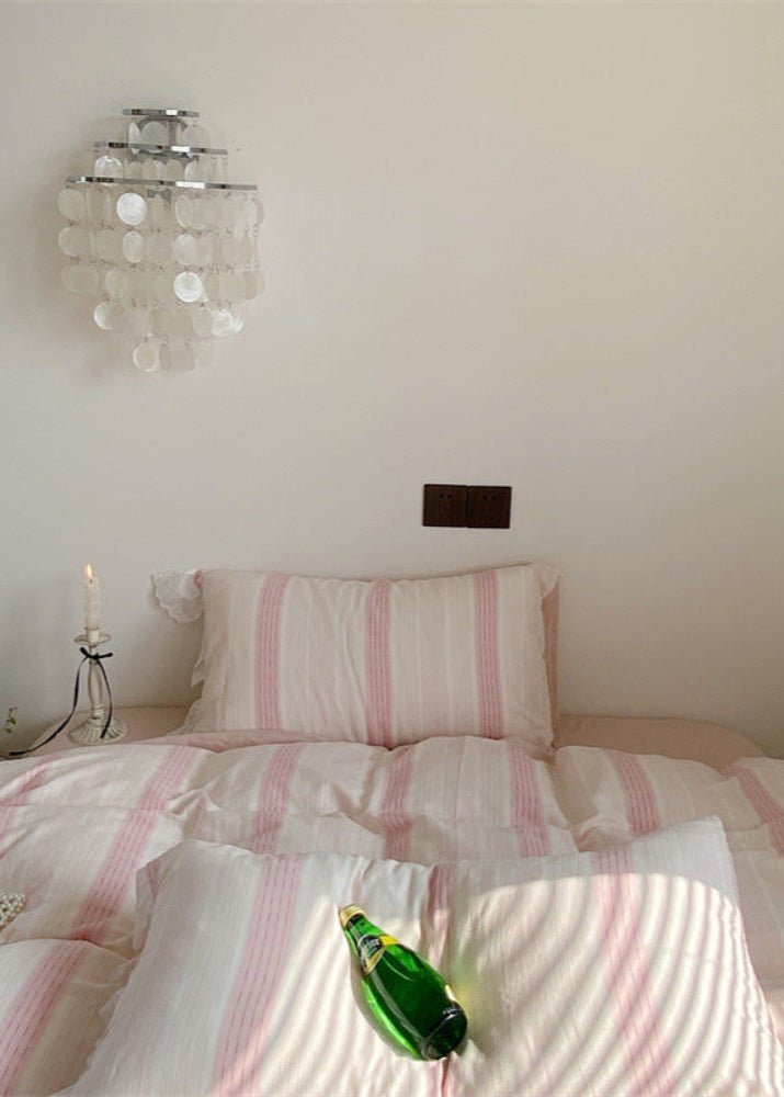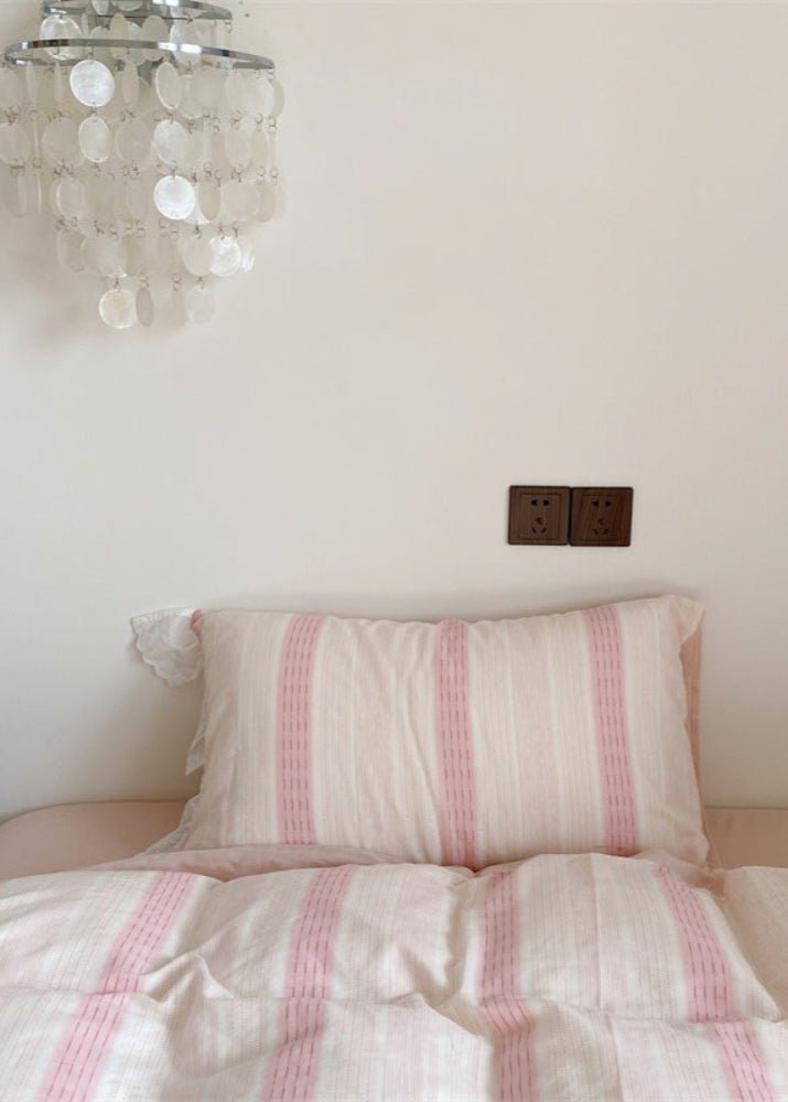 Cecilia Lace Ruffle Double Gauze Striped Bedding Set / Pink