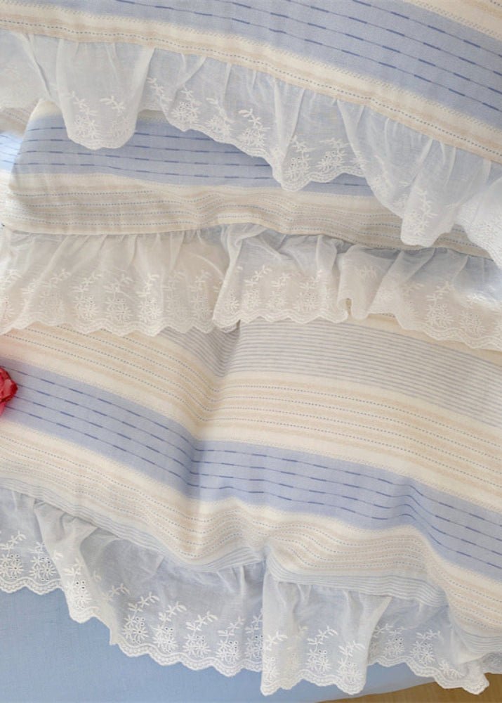Create a serene retreat with the Cecilia Lace Ruffle Double Gauze Striped Bedding Set by Ever Lasting. Designed to bring a sense of calm, this bedding features delicate lace ruffle accents and soft double gauze fabric with subtle stripes. The duvet cover includes corner ties and a hidden zipper for a secure and polished look. Transform your space into a peaceful haven with this beautifully crafted, airy bedding set.