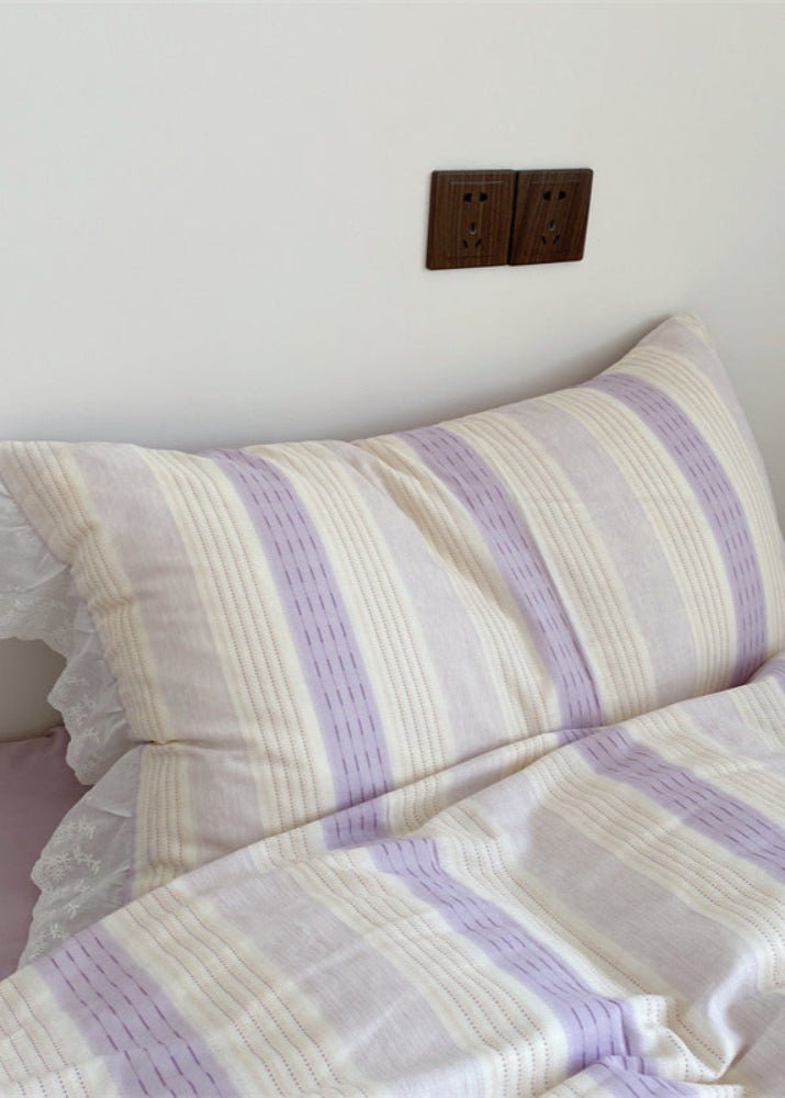 Cecilia Lace Ruffle Double Gauze Striped Bedding Set / Purple