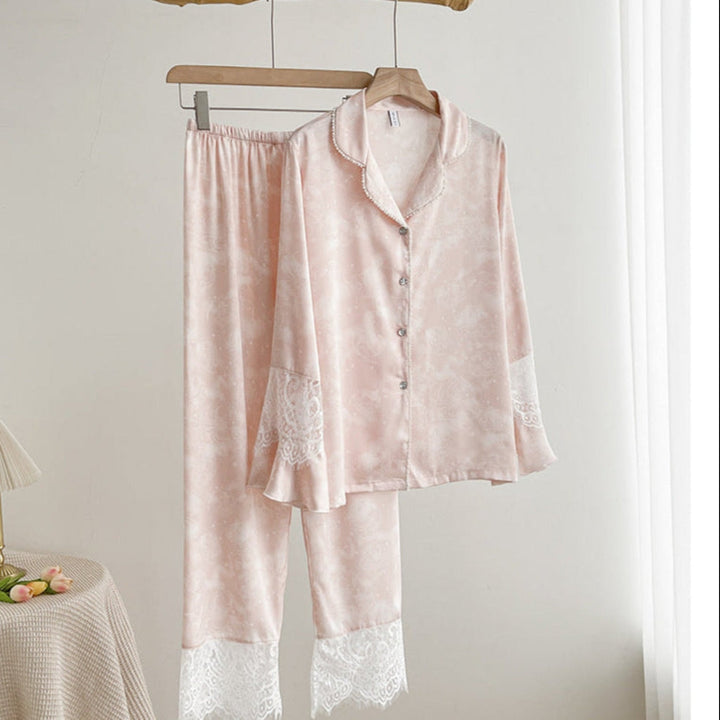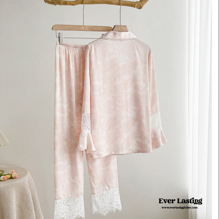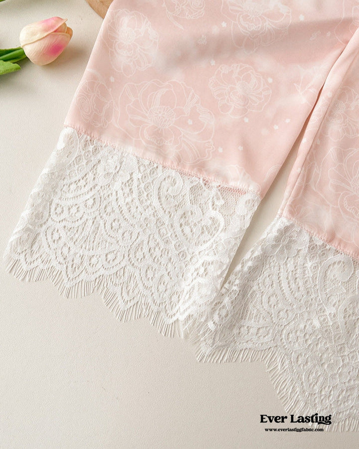 Celeste Silky Luxury Lace Pajama Set / Pink