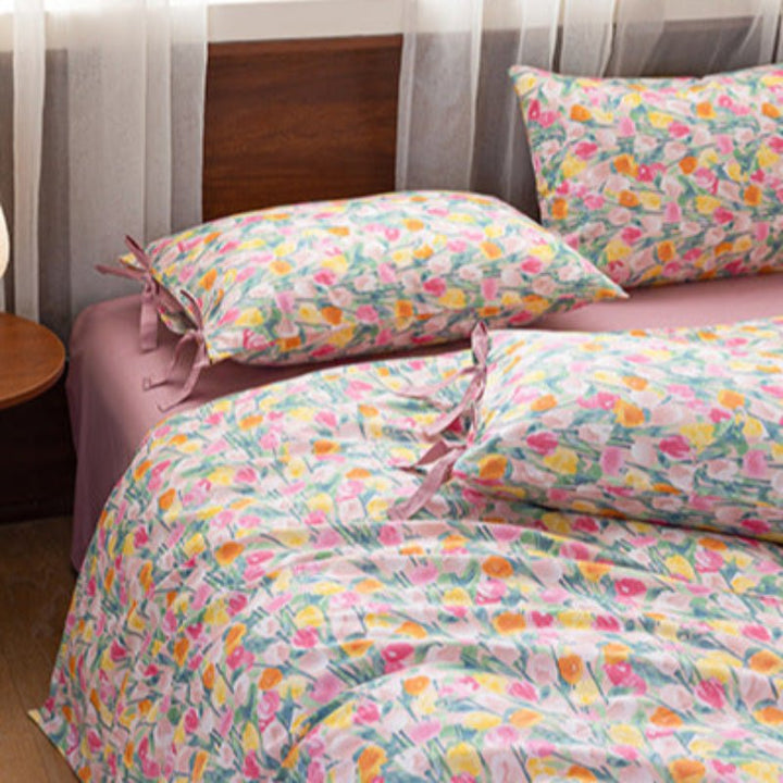 Celia Cottage Ribbon Bow Tie Floral Bedding Set / Pink