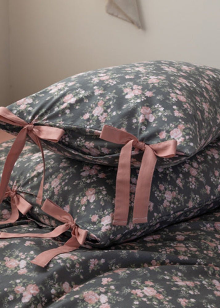 Celia Cottage Ribbon Bow Tie Floral Bedding Set / Rust Pink