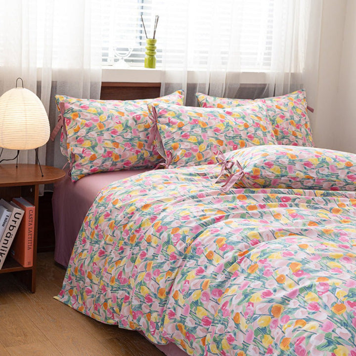 Comforter/Duvet insert and pillows are not included. Shop Plant Based Duvet Insert. Shop Plant Based Pillow. Looking for a full set with duvet insert and pillows? Shop Celia Cottage Ribbon Bow Tie Floral Bedding Bundle.