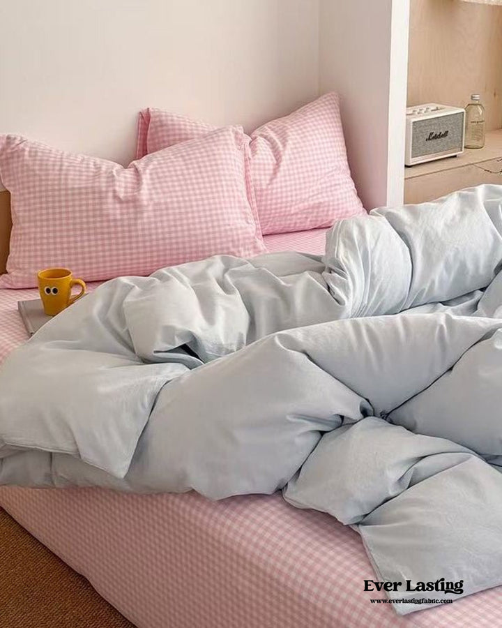 Embrace effortless charm with Ever Lasting’s Chloe Pastel Candy Cotton Bedding Set — where playful pastels and soft textures meet. Made of 100% washed cotton, this lightweight, breathable set offers year-round comfort. Designed for lovers of coquette, soft girl, kawaii, and cottagecore vibes, it infuses your bedroom with gentle serenity. Corner ties and a hidden zipper keep your duvet in place, while the soft fabric feels wonderfully lived-in from your very first night.
