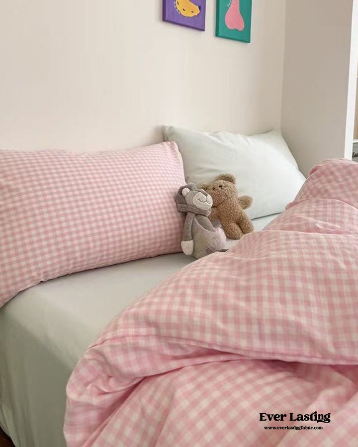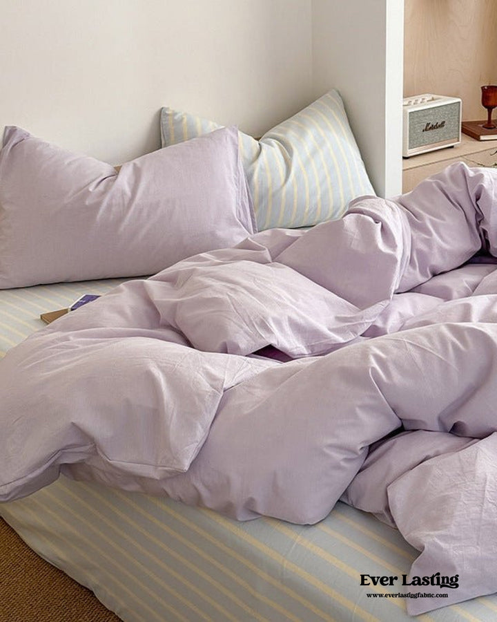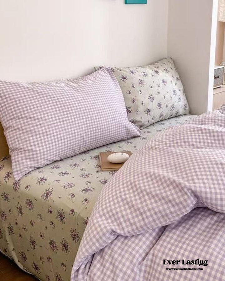 Chloe Pastel Candy Cotton Bedding Set / Purple Plaid