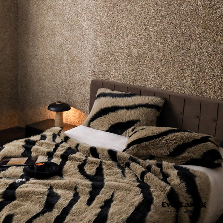 Introducing Ever Lasting's Classic Zebra Print Blanket & Pillows - the epitome of bold elegance. Made from premium, ultra-soft fabric, this cozy throw blends warmth and style with a vintage-inspired zebra pattern. Its luxurious texture provides a lavish touch, perfect for snuggling on cold evenings or elevating your decor. Lightweight yet warm, this blanket is perfect for layering on a bed, draping on a sofa, or adding timeless charm to any space. Designed for comfort and eye-catching appeal, this piece effortlessly brings sophistication to any home.