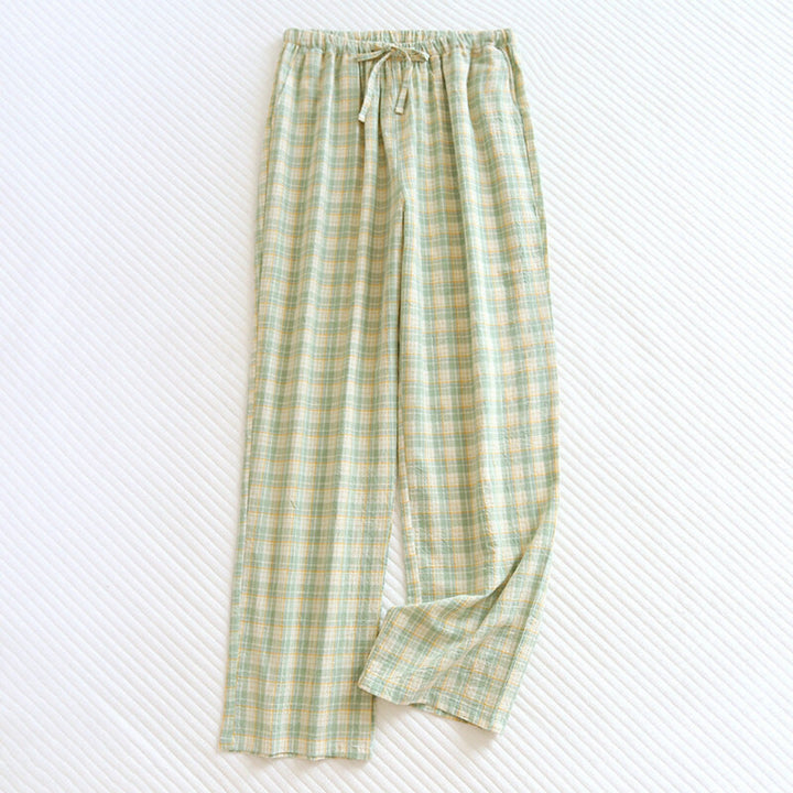 Plaid Washed Cotton Pajama Pants Set Features: