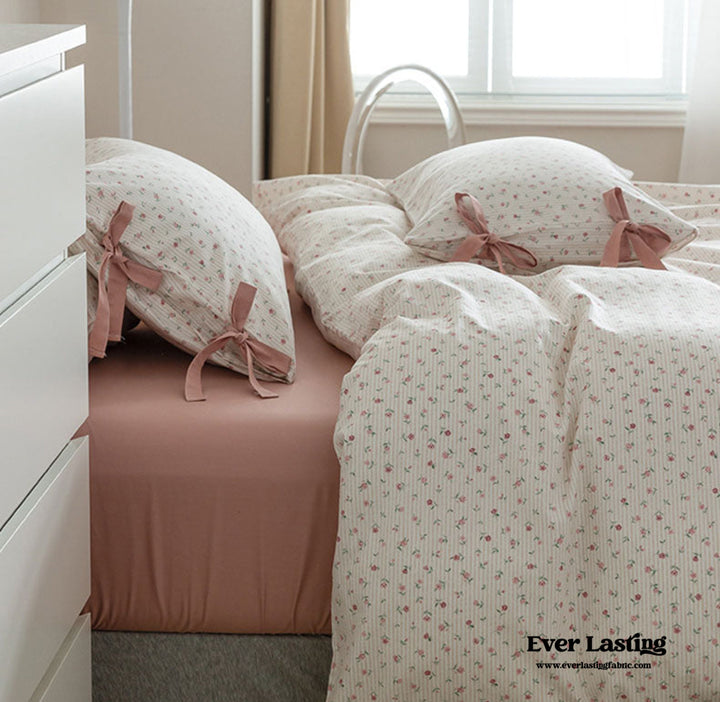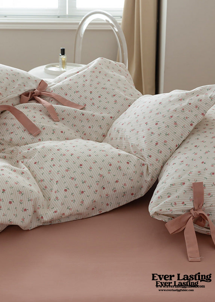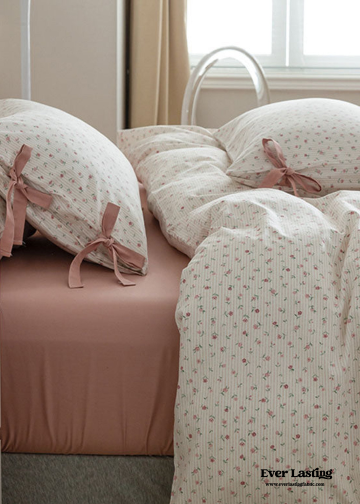 Cottage Ribbon Bow Tie Floral Bedding Set is now offered in a bundle, and all bundle sets come with a pre-included 10% to 20% discount! Enjoy savings on a complete set, including a duvet insert and pillow(s), along with our classic duvet cover, bed sheet, and pillowcase(s).