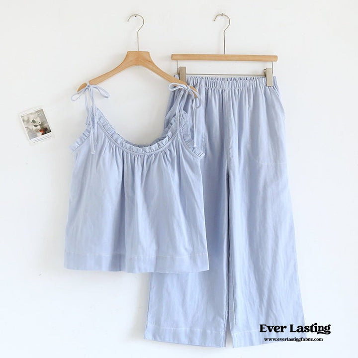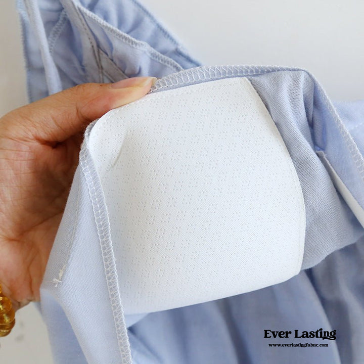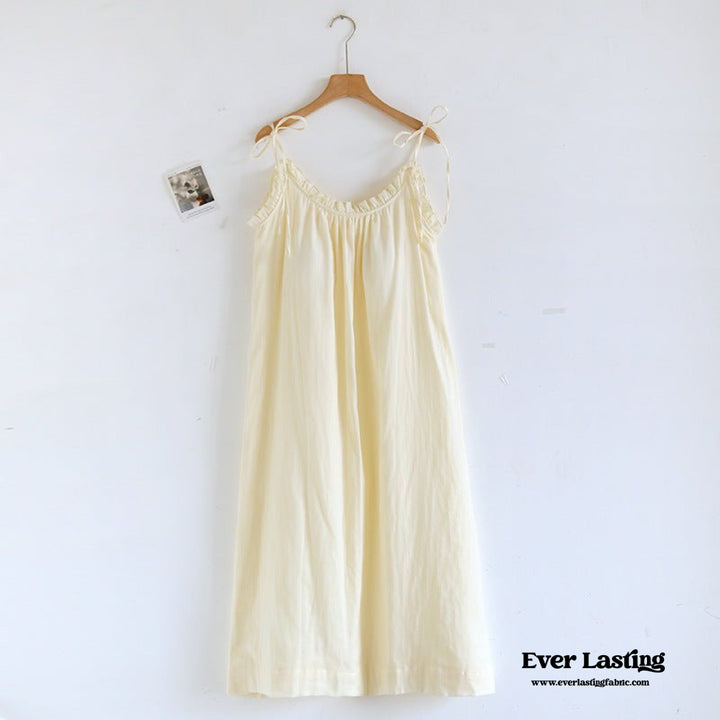 Cotton Gauze Lounge Dress with Built-In Bra – Adjustable Strap Nightgown / Blue