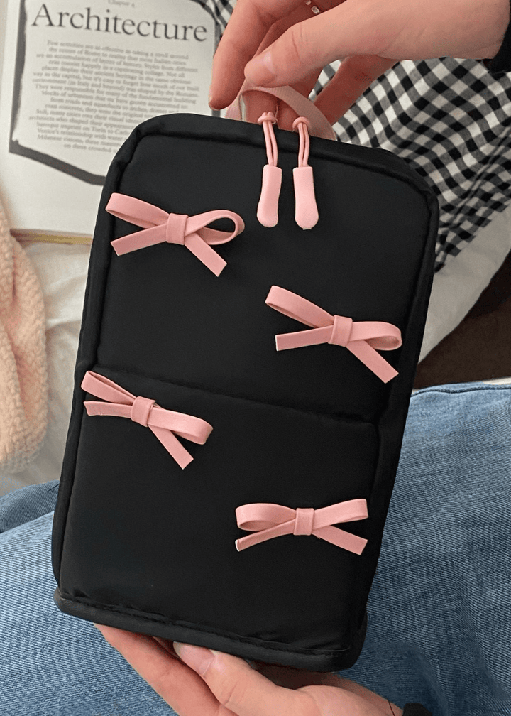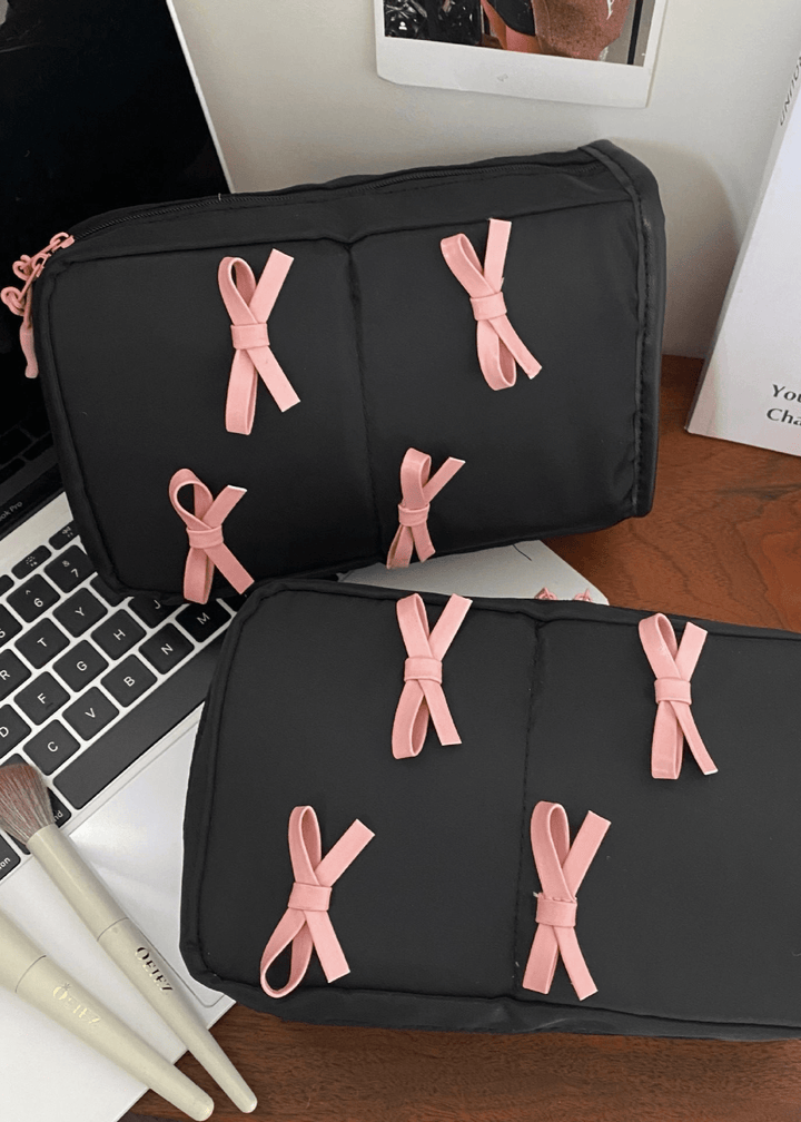 Cute Bow Black Makeup Bag