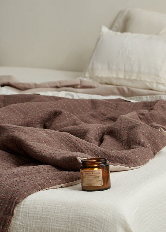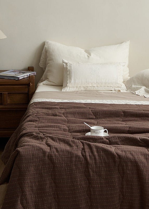 Cotton Quilt with Lace Trim – Soft Textured Bed Blanket for All Seasons / Red & Brown