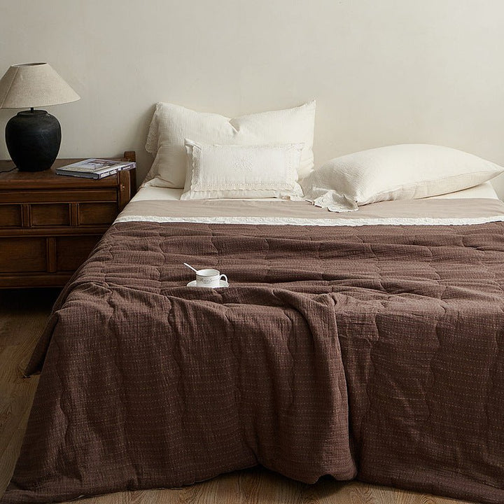 Stay cool and cozy with the Ever Lasting's Cotton Quilt with Lace Trim – Soft Textured Bed Blanket for All Seasons—your perfect companion for warm nights. Made from ultra-soft, breathable double gauze cotton, this lightweight quilt offers a cloud-like feel without the weight. Its airy texture keeps you comfortably covered while allowing heat to escape, making it ideal for summer lounging or layering year-round.