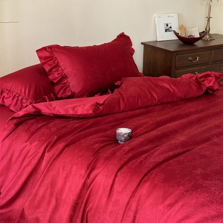 Elise French Lace Jacquard Satin Bedding Set / Red