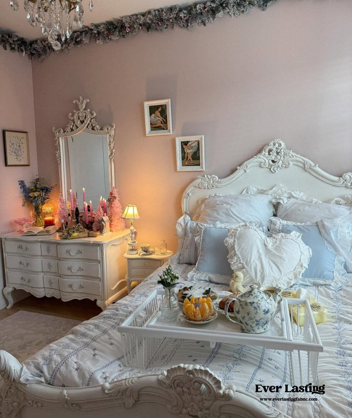 Turn your bedroom into a cozy, delightful retreat with Ever Lasting's French Lace Ruffle Bedding Bundle, brimming with cottagecore allure. This beautiful set boasts intricate details and an enchanting ruffled design, made from breathable 100% washed cotton to ensure a comfortable and refreshing night's sleep. Elevate your bedroom décor with this luxurious bundle that seamlessly blends artistry, softness, and a captivating cottagecore atmosphere. Each duvet cover is equipped with corner ties and zippers to secure duvet inserts, guaranteeing lasting quality crafted just for you.