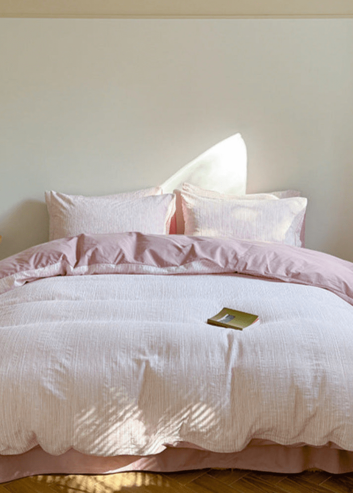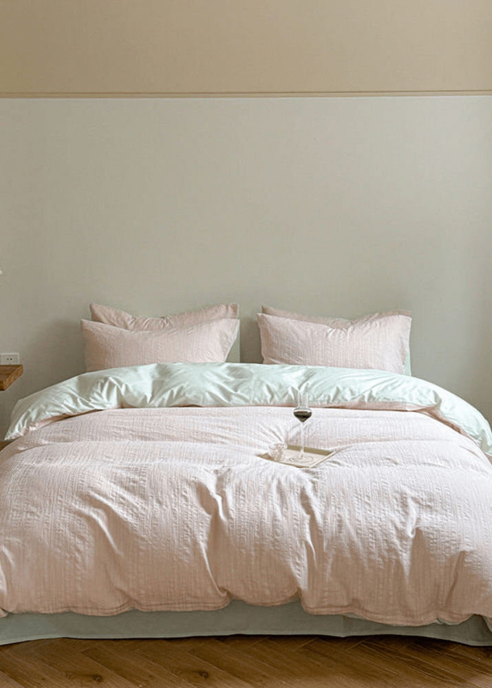 Create a serene, modern atmosphere with the Emma Duo Striped Jacquard Bedding Bundle by Ever Lasting. Soft pastel hues meet textured jacquard stripes for a look that’s both graceful and effortlessly stylish. The breathable fabric ensures comfort in every season, while corner ties and a hidden zipper keep your bedding neat and secure. A refined choice for those who love a clean, elevated aesthetic.