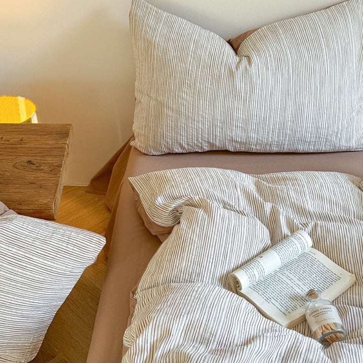 Emma Duo Striped Jacquard Bedding Set is now offered in a bundle, and all bundle sets come with a pre-included 10% to 20% discount! Enjoy savings on a complete set, including a duvet insert and pillow(s), along with our classic duvet cover, bed sheet, and pillowcase(s).