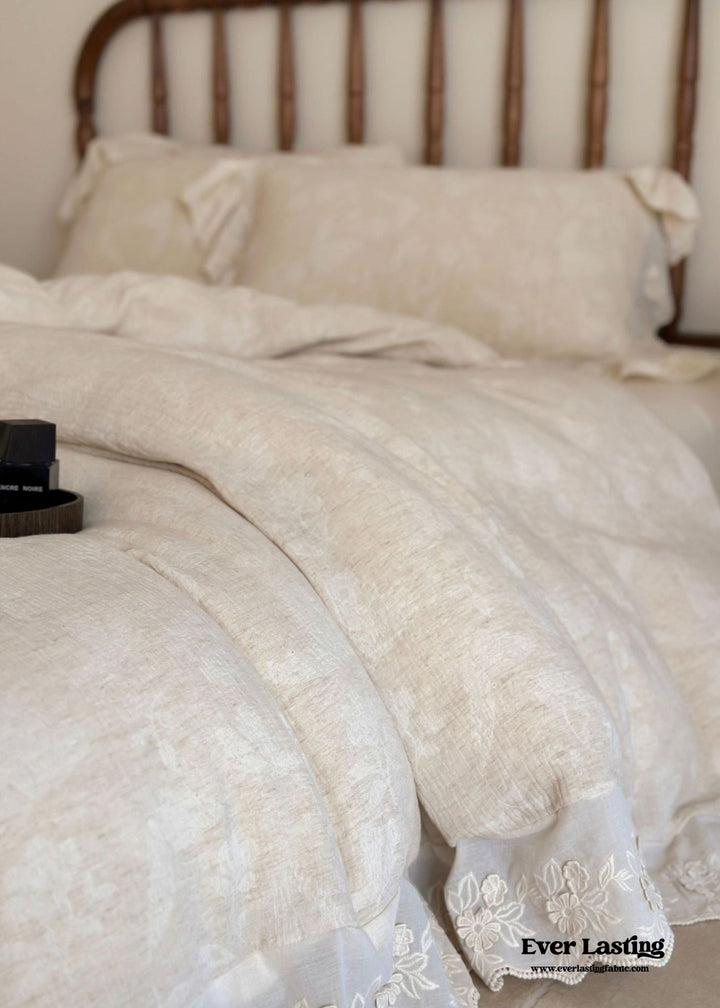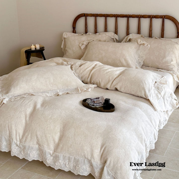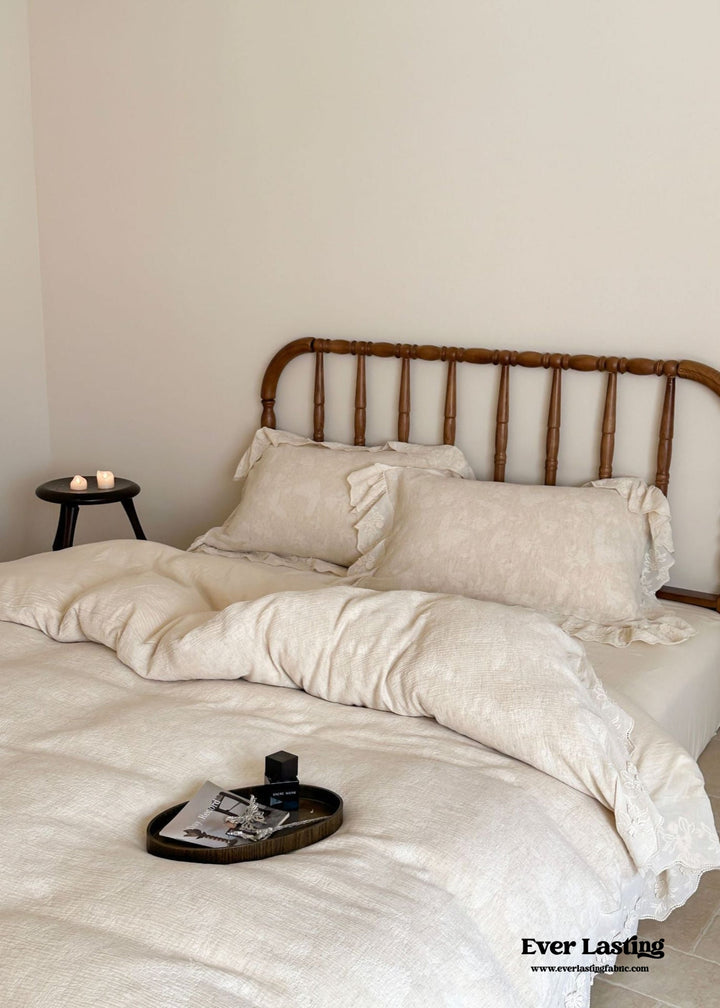 Emmeline Lace Ruffle Floral Bedding Set / White