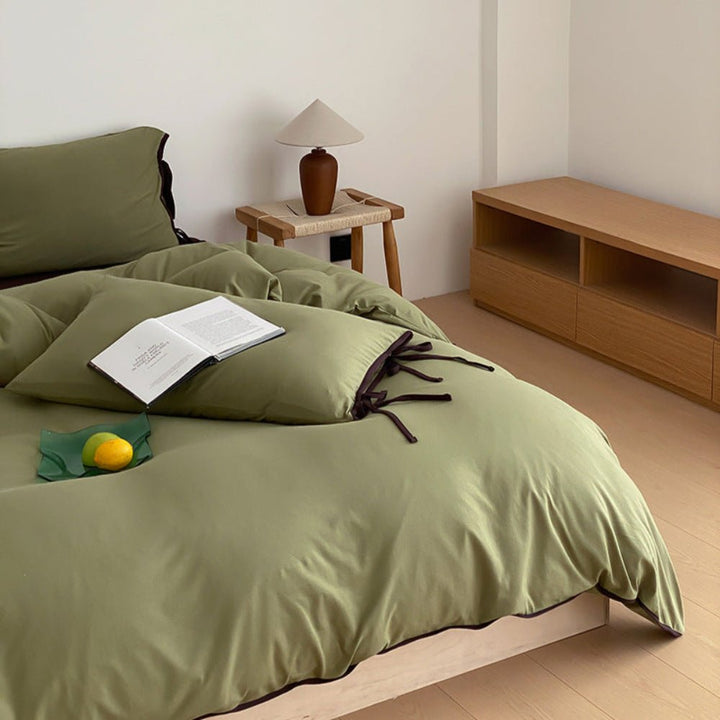 Evangeline Pastel Bow Tie Twill Bedding Set / Green