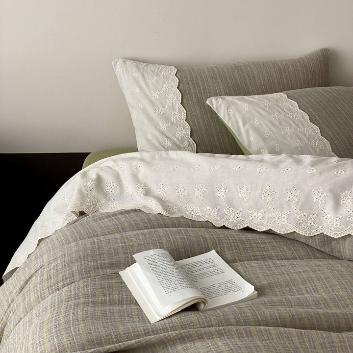 Florence Lace Double Gauze Striped Bedding Set / Green
