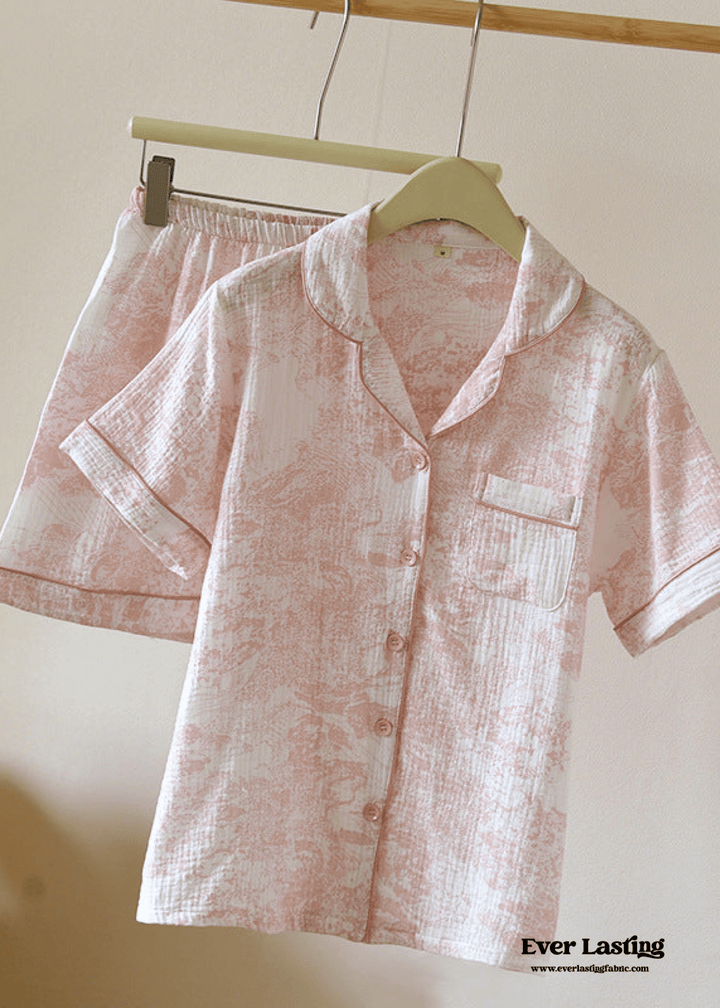 French Cottage Short Sleeves and Shorts Cotton Pajama Set / Pink (Final Sale)