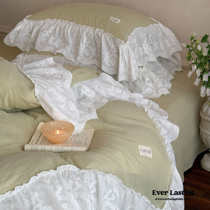 Macaroon French Lace Ruffled Bedding Set / Purple