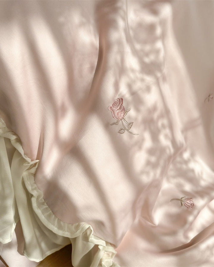 - Delicate Embroidery: Scattered rosebud stitching adds a feminine, handcrafted feel.