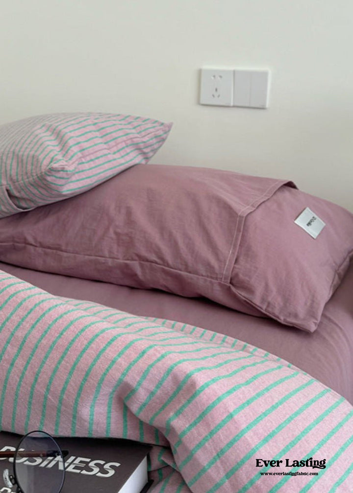 Effortlessly refined, the Ever Lasting's James Striped Bedding Set brings clean lines and calm simplicity to your sleep space. With its subtle striped design and breathable fabric, it offers a minimal look that feels fresh and uncluttered. The duvet cover is thoughtfully made with corner ties and a hidden zipper to ensure a secure, streamlined fit. Ideal for those who embrace a quiet, modern aesthetic.