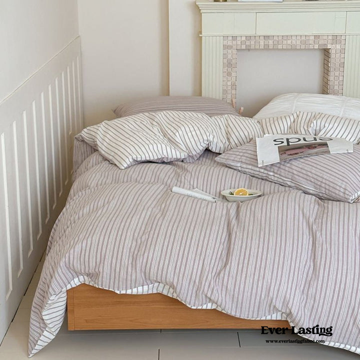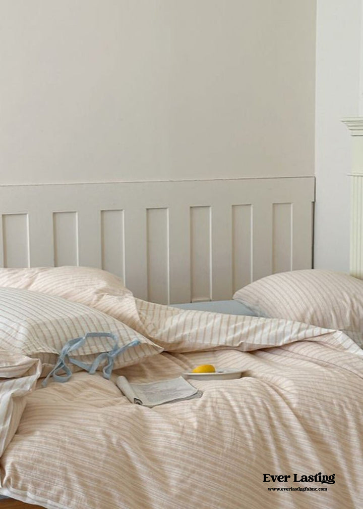 Experience premium comfort with a touch of charm. The Ever Lasting's Josie Bow Tied Striped Bedding Set showcases soft, tailored stripes and dainty bow tie accents for a look that's both elevated and inviting. Designed with corner ties and a hidden zipper, the duvet cover keeps your insert securely in place. Perfect for those who appreciate thoughtful design and everyday luxury.