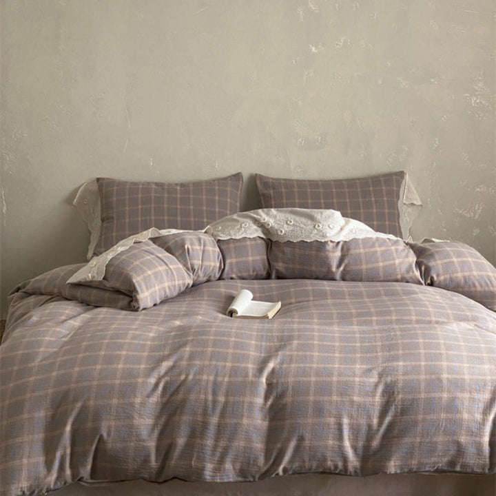 Breathe softness into your space with the Ever Lasting's June Lace Double Gauze Gingham Bedding Set—a delicate balance of texture, purity, and timeless charm. Crafted from airy double gauze cotton, this set features a gentle gingham pattern paired with romantic lace trim for a cozy yet elevated look. Its breathable, lightweight feel makes it perfect for year-round comfort, while the duvet cover’s corner ties and hidden zipper ensure everything stays in place. Whether you're styling a countryside retreat or a serene urban sanctuary, June brings effortless grace to your bedding ritual.