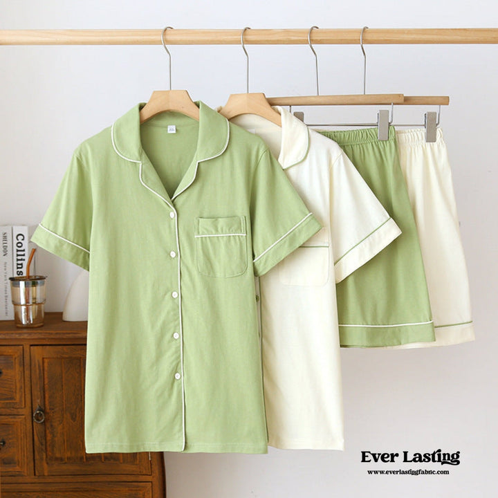 Key Lime Cotton Short Sleeves and Shorts Pajama Set / Green (Final Sale)