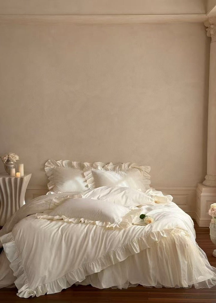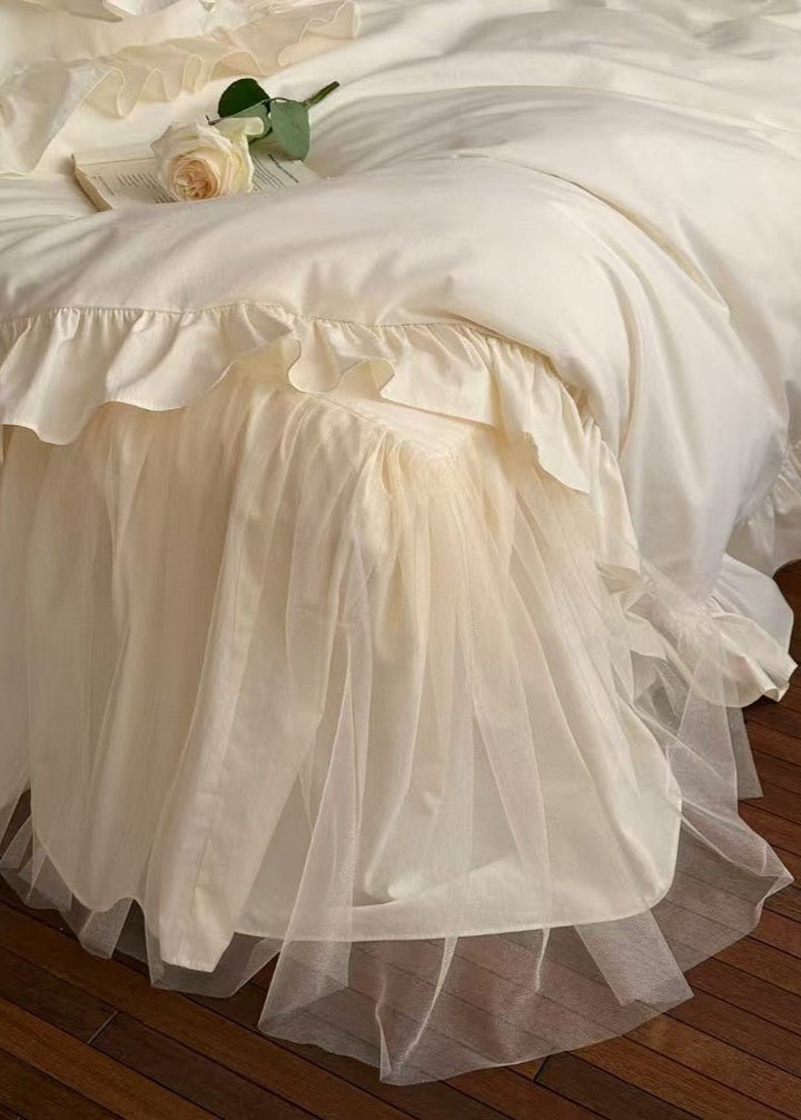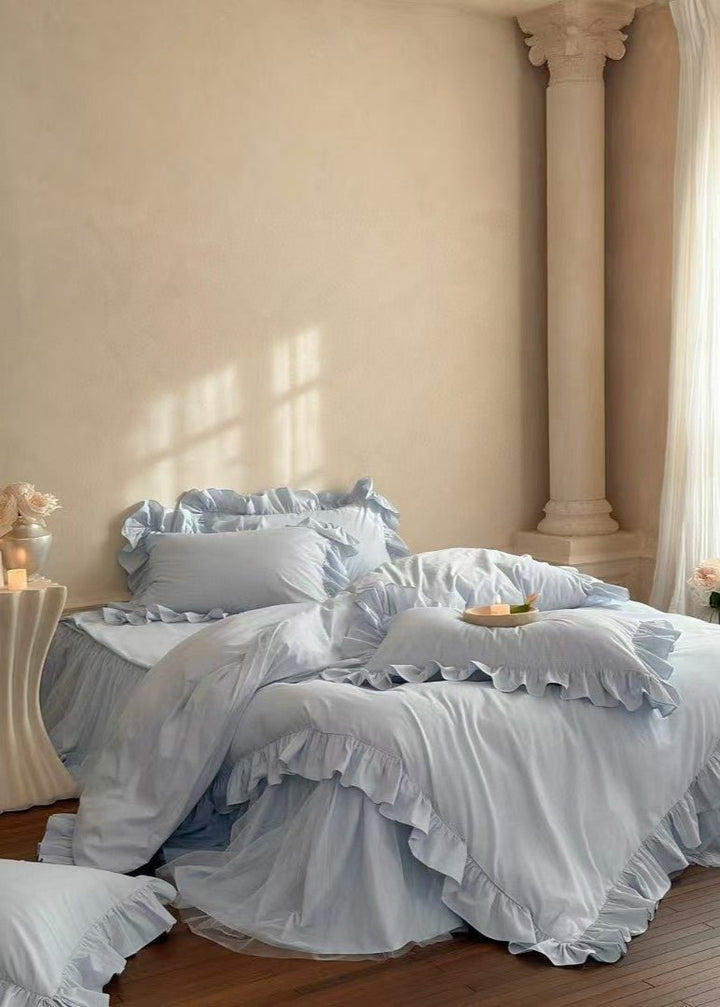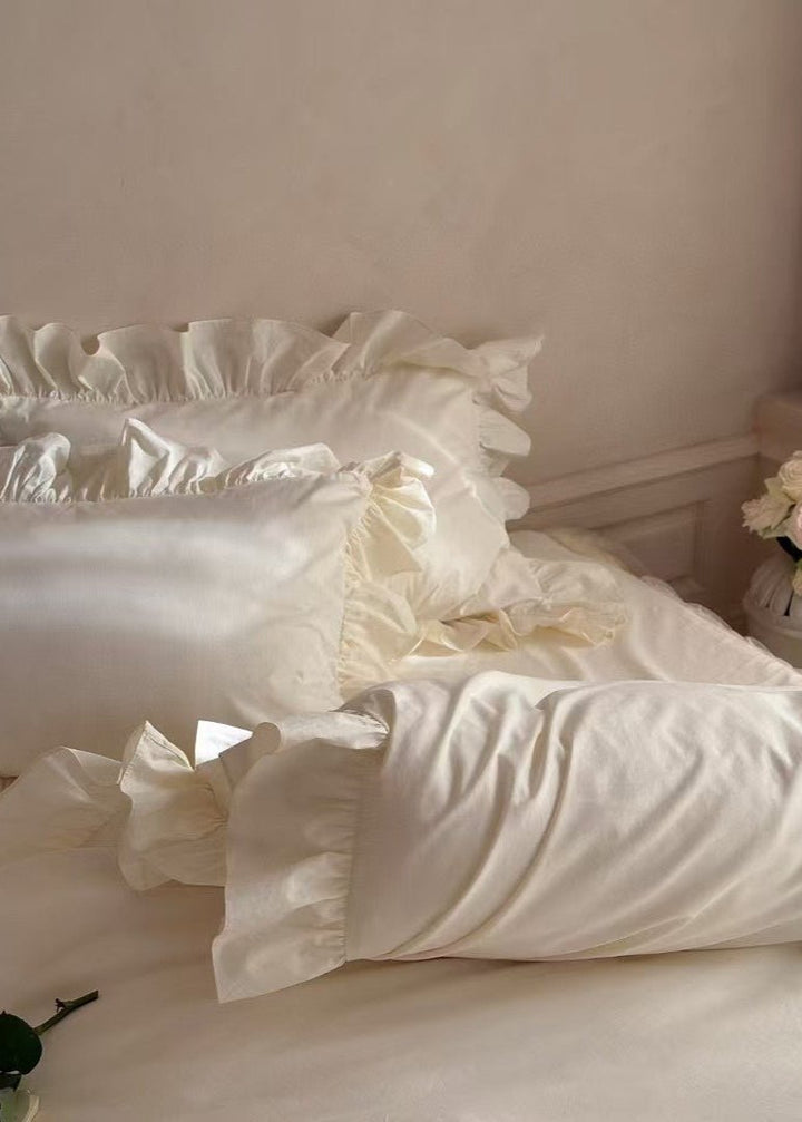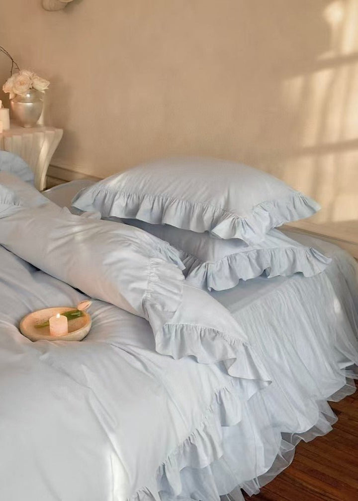 Lacey Lace Ruffle Washed Cotton Bedding Set is now offered in a bundle, and all bundle sets come with a pre-included 10% to 20% discount! Enjoy savings on a complete set, including a duvet insert and pillow(s), along with our classic duvet cover, bed sheet, and pillowcase(s).