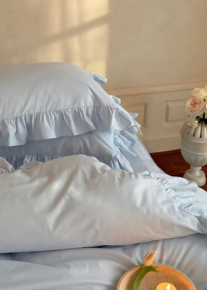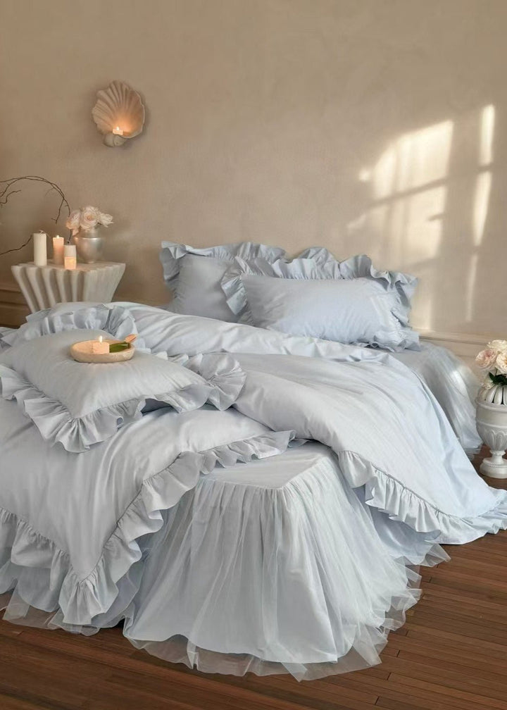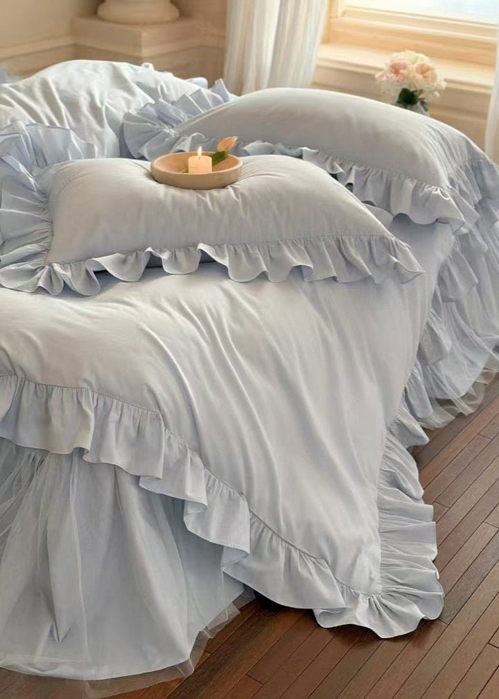 Lacey Lace Ruffle Washed Cotton Bedding Set / White