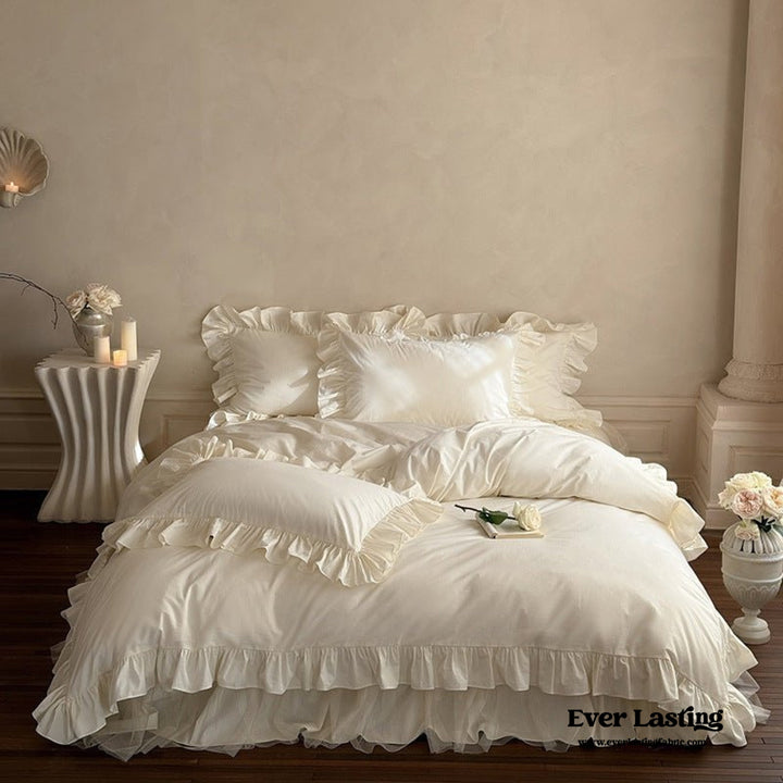 Mila Lace Ruffle Pastel Bedding Set / White