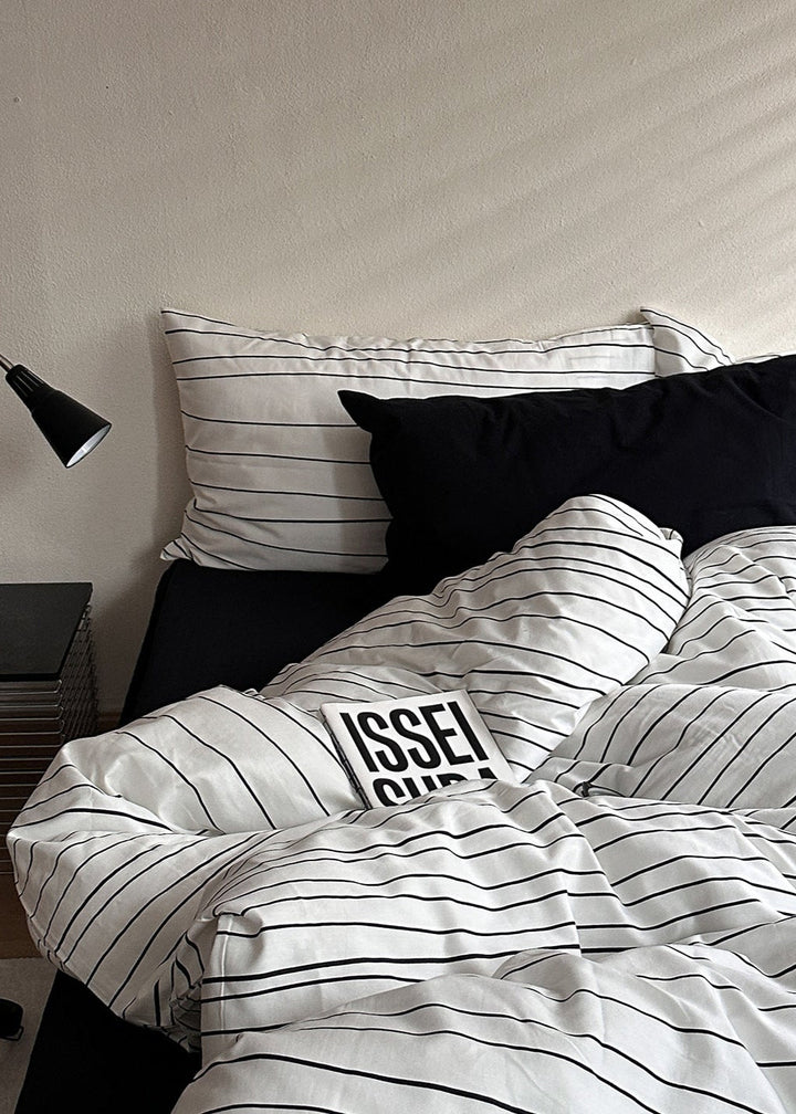 Bring calm to your space with the Miles Striped Bedding Set from Ever Lasting. Featuring clean, modern stripes and a breathable cotton blend, this set adds just the right touch of style without the fuss. The duvet cover includes corner ties and a hidden zipper for a secure, polished fit—so your bed stays neat and comfortable, day or night.
