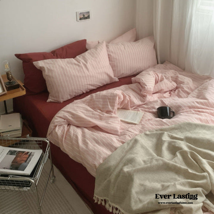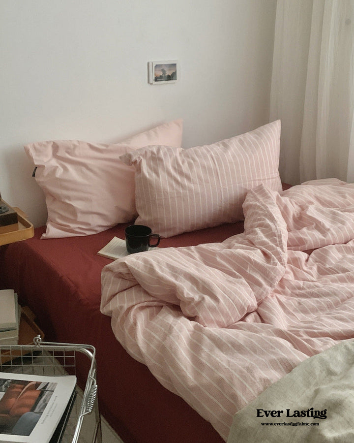 Transform your bedroom into a serene sanctuary with Ever Lasting’s Minimalist Pink Striped Bedding Set, designed for those who appreciate modern elegance and subtle charm. Perfect for fans of coquette and minimalist aesthetics, this bedding set features soft pink stripes that add a fresh, delicate touch to your space. Crafted from 100% washed cotton, this set ensures exceptional softness, breathability, and durability for a restful night’s sleep. Each duvet cover features corner ties and zippers for securing duvet inserts, promising enduring quality tailored just for you.