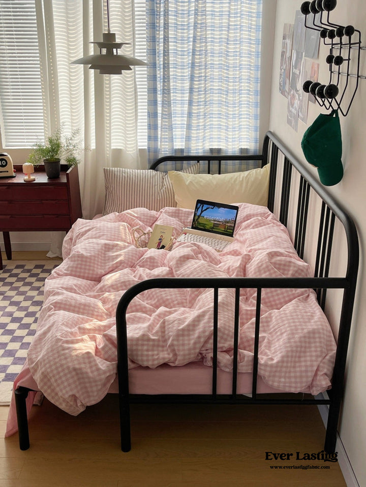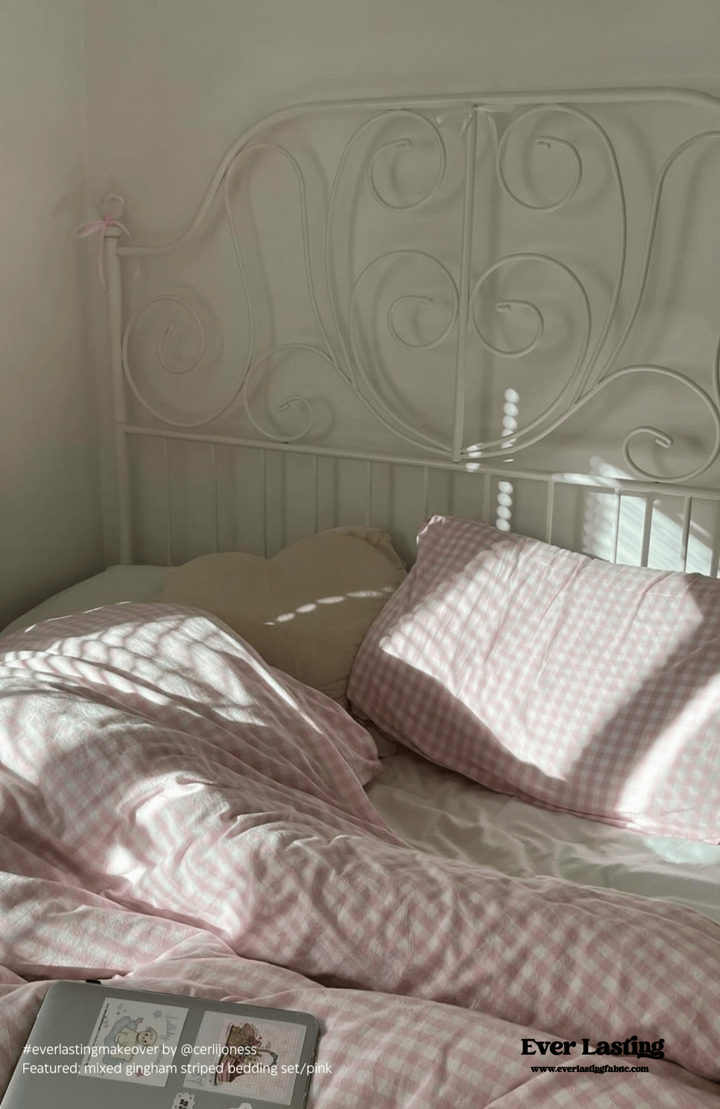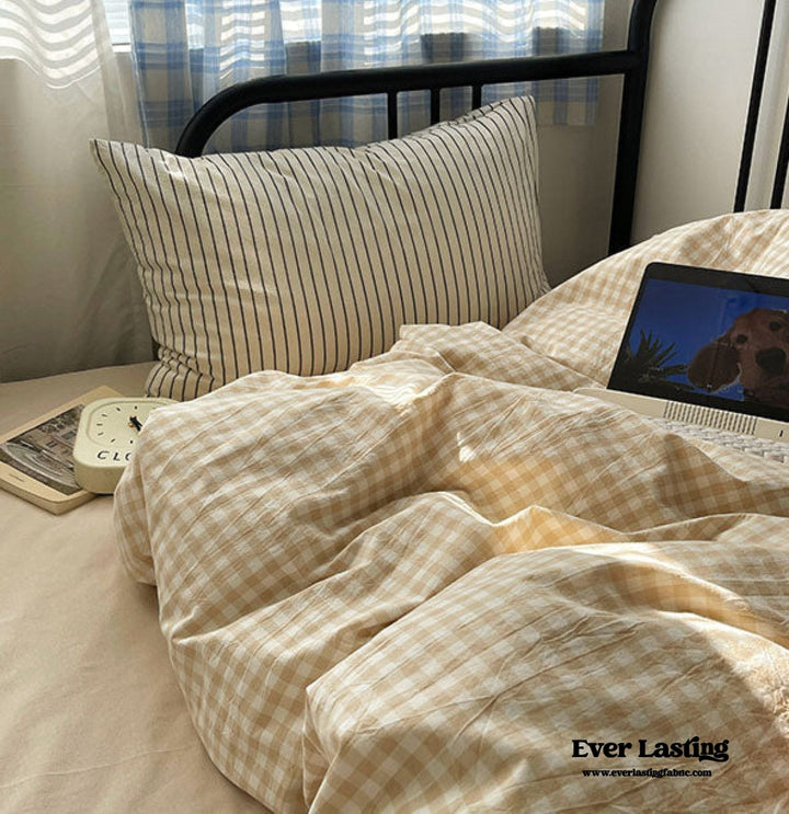 Revitalize your bedroom with our Mixed Gingham Striped Bedding Set. This set is a harmonious blend of classic gingham and contemporary stripes, creating a timeless yet modern aesthetic. Each duvet cover features four corner ties and a hidden zipper, ensuring your duvet insert stays securely in place all night. Elevate your sleep experience with this versatile and stylish bedding set, turning your bedroom into a space where tradition meets innovation, and each night is a unique, cozy adventure.