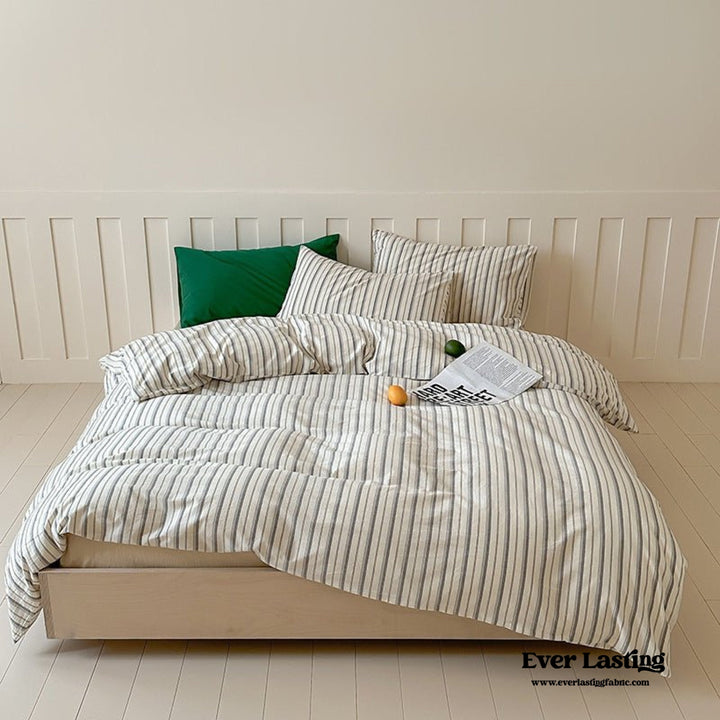 Redefine your bedroom aesthetic with Ever Lasting’s Modern Minimalist Striped Bedding Set, a perfect harmony of style and relaxation. Made from 100% washed cotton, this soft, breathable fabric provides ultimate comfort for a restful night. The sleek striped pattern effortlessly enhances minimalist, contemporary, and coquette-inspired spaces. With corner ties and a durable zipper closure, this duvet cover set ensures secure functionality while maintaining an effortlessly chic look. Bring home lasting comfort and refined simplicity today.