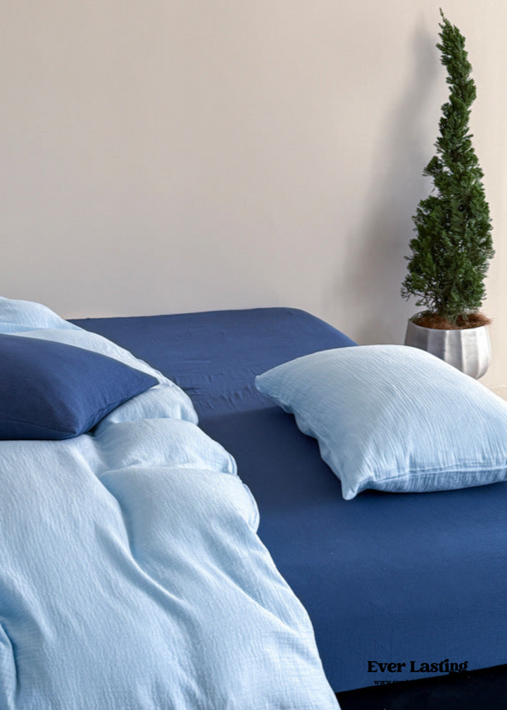 The Ruby Double Gauze Pastel Bedding Set by Ever Lasting blends traditional charm with modern comfort. Made from breathable double gauze cotton, this set offers a lightweight, airy feel perfect for restful nights. Soft pastel hues add a gentle, classic touch that complements any bedroom décor. The duvet cover features corner ties and a hidden zipper, ensuring your insert stays securely in place.