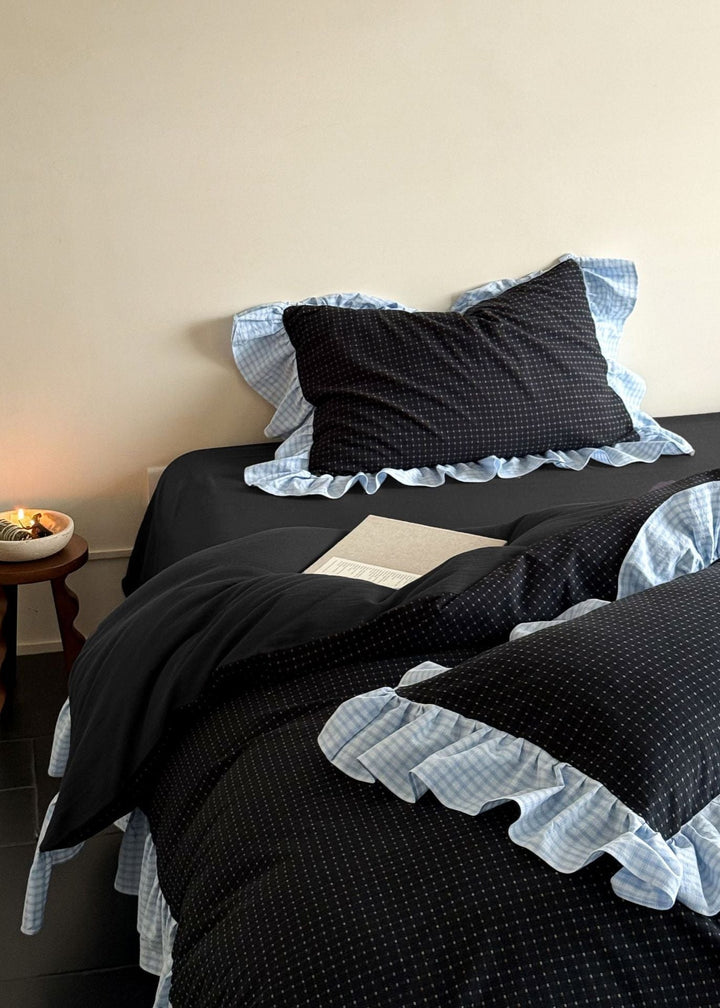 Sadie Gingham Lace Ruffle Bedding Set / Black