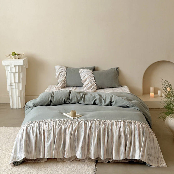 Savannah Lace Ruffle Double Gauze Bedding Set is now offered in a bundle, and all bundle sets come with a pre-included 10% to 20% discount! Enjoy savings on a complete set, including a duvet insert and pillow(s), along with our classic duvet cover, bed sheet, and pillowcase(s).