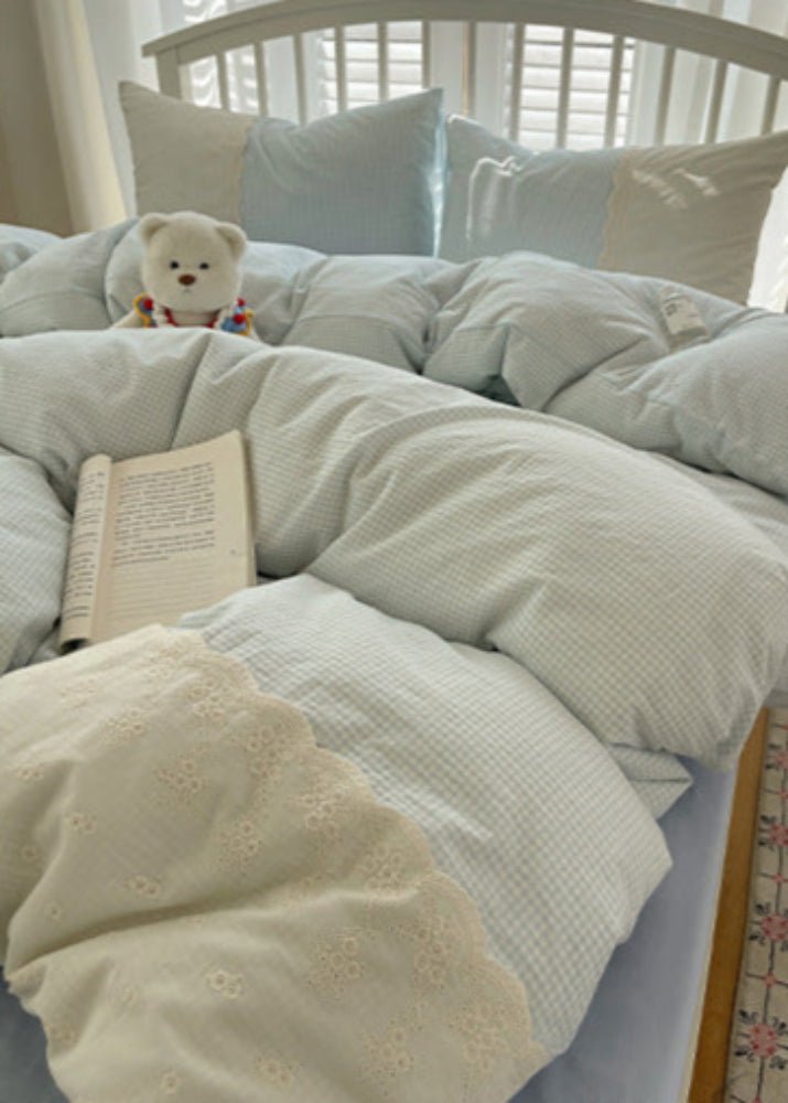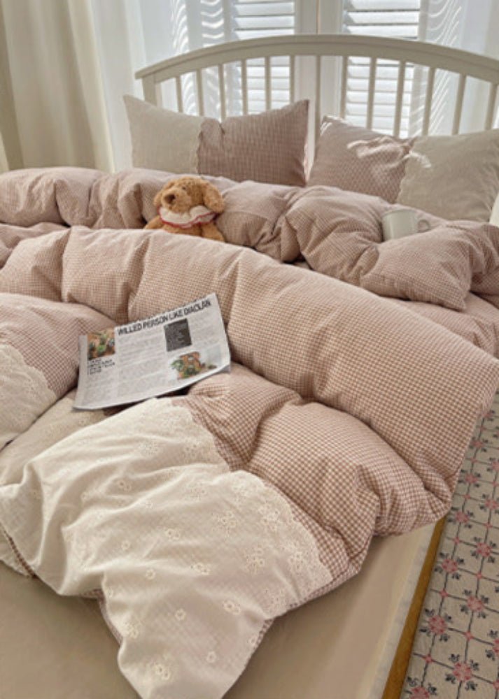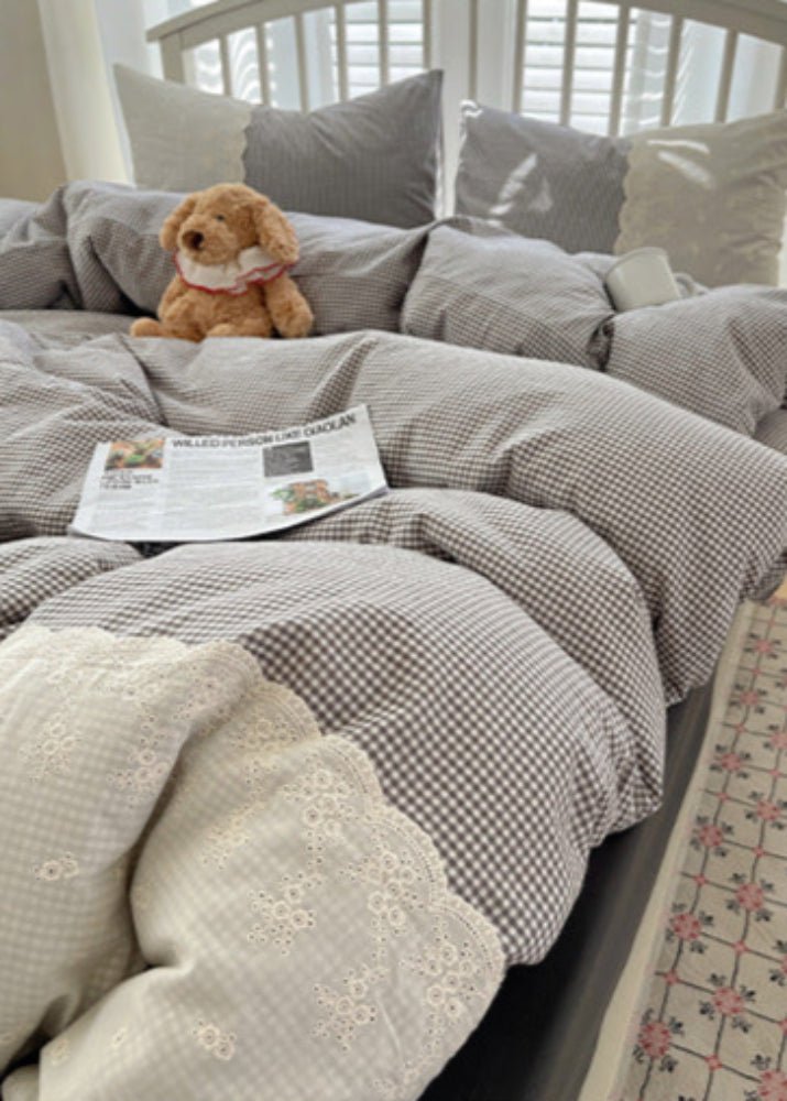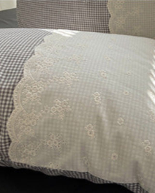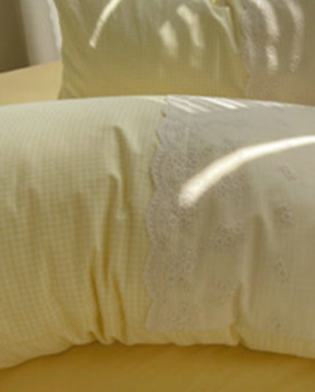 Sophia Gingham Lace Washed Cotton Bedding Set / Cream