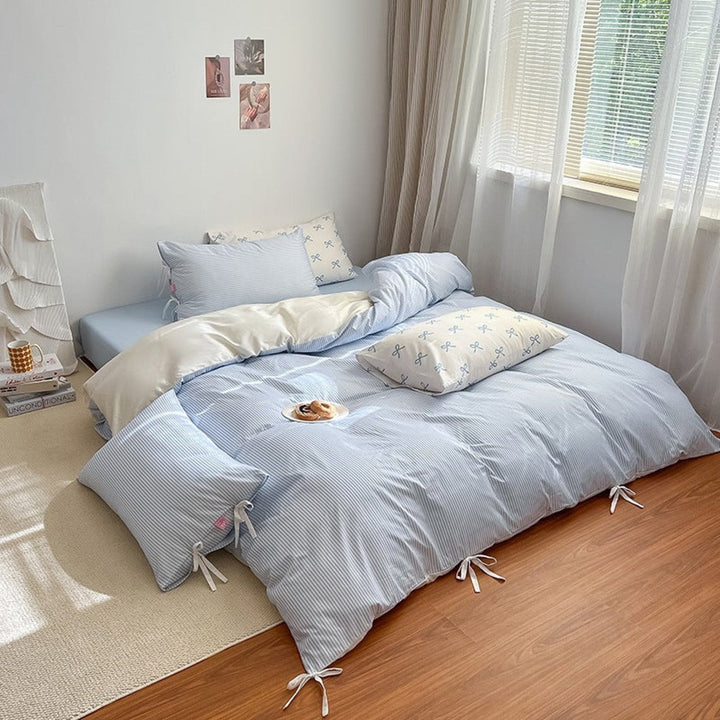 Sweet Bow Striped Bedding Set is now offered in a bundle, and all bundle sets come with a pre-included 10% to 20% discount! Enjoy savings on a complete set, including a duvet insert and pillow(s), along with our classic duvet cover, bed sheet, and pillowcase(s).