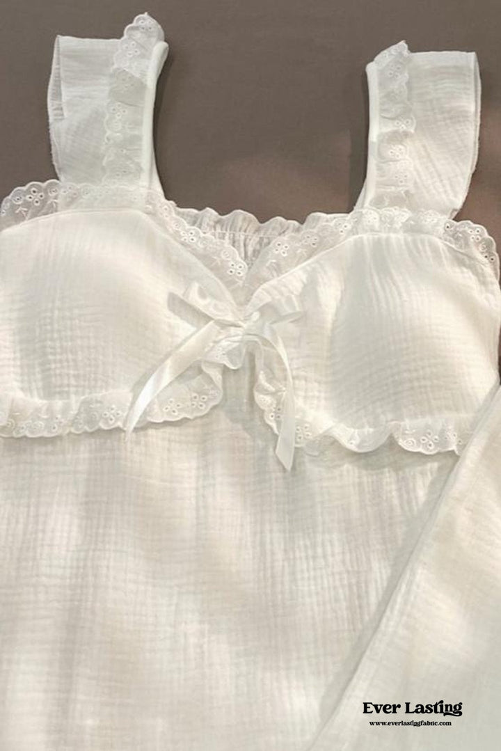 Sweet Ruffle Shorts Pajama Set / White (Final Sale)