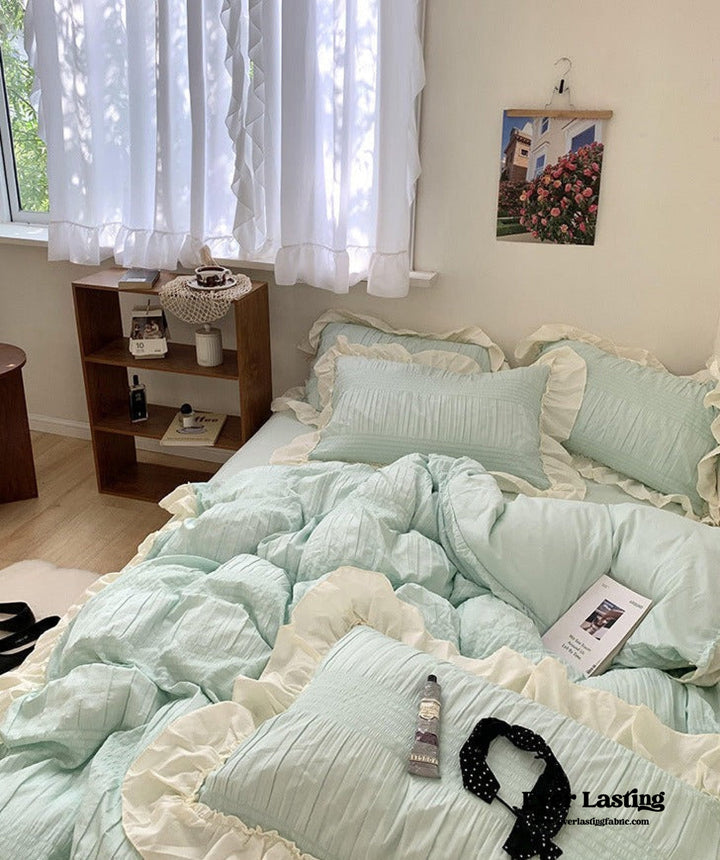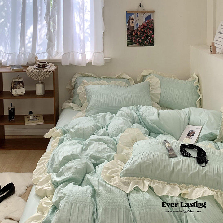 Textured Ruffle Bedding Set / Blue (Final Sale)